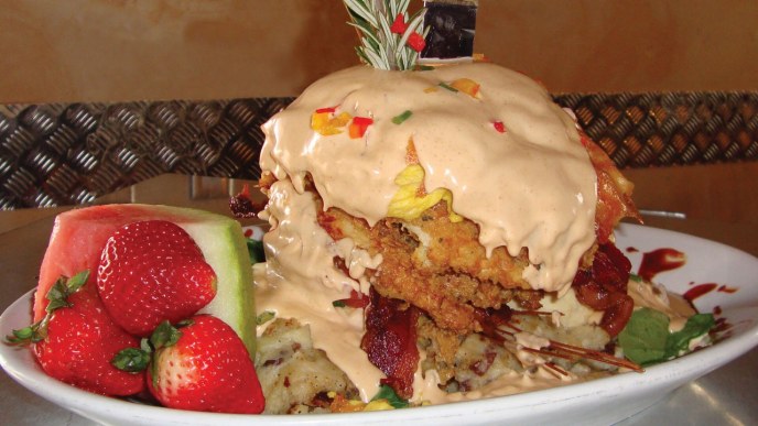 I love Hash House. It’s “Twisted Farm Food” and their massive portions make any meal an event you come away with feeling Thanksgiving Day-level stuffed, with loads of doggie-bag leftovers to chew on for days.