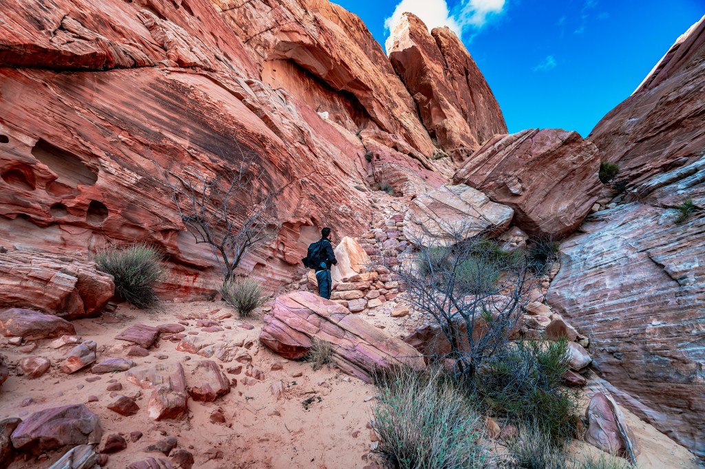 - Calico Tanks Trail: This 2.5-mile round trip hike takes you through a rocky canyon to a natural water tank, offering stunning views of the surrounding mountains and the Las Vegas skyline in the distance.