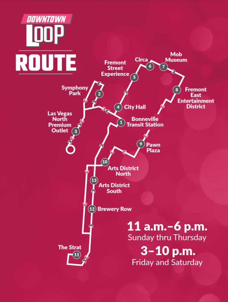 First The Downtown Loop which runs a route from The Strat, to the World Market to Downtown Fremont Street.